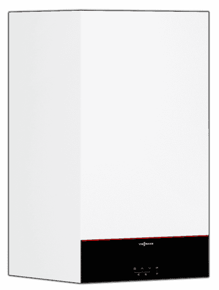 Viessmann kocioł Vitodens 100-W typ B1HG kondensacyjny jednofunkcyjny w zakresie mocy 3,2-32 kW, wbudowany regulator E3 do pracy stałotemperaturowej lub pogodowej po podłączeniu czujnika temperatury zewnętrznej, z asystentem pierwszego uruchomienia oraz zintegrowany moduł WIFI, Palnik Matrix z systemem regulacji procesu spalania Lambda Pro.