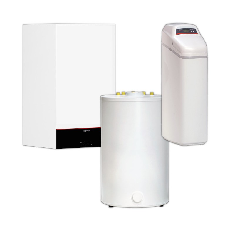 Pakiet Viessmann kocioł Vitodens 100-W typ B1HF kondensacyjny jednofunkcyjny w zakresie mocy 3,2-19 kW, wbudowany regulator E3, asystent pierwszego uruchomienia oraz zintegrowany moduł WIFI, Palnik Matrix z systemem Lambda Pro. W zestawie z zasobnikiem Vitocell 200-W o pojemności 140l oraz zmiękczaczem wody Aquastilla 25.