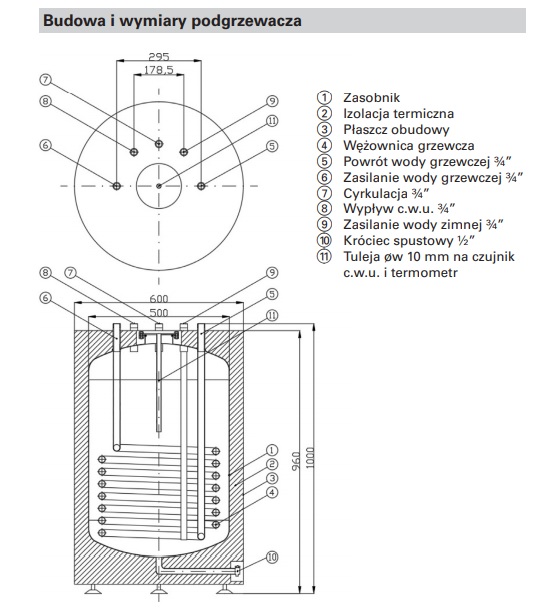 | Czas podgrzewu od 10-55°C przy temp. Zasilania 80°C, przy mocy kotła min 18 kW 24 kW 30 kW | 24,8 18,6 14,8 | |
