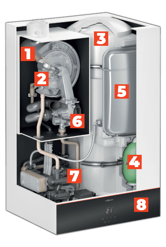 1 Wymiennik ciepła Inox-Radial ze stali szlachetnej – zapewnia wysoką niezawodność eksploatacyjną przy dużej trwałości i dużą moc cieplną z minimalnej przestrzeni